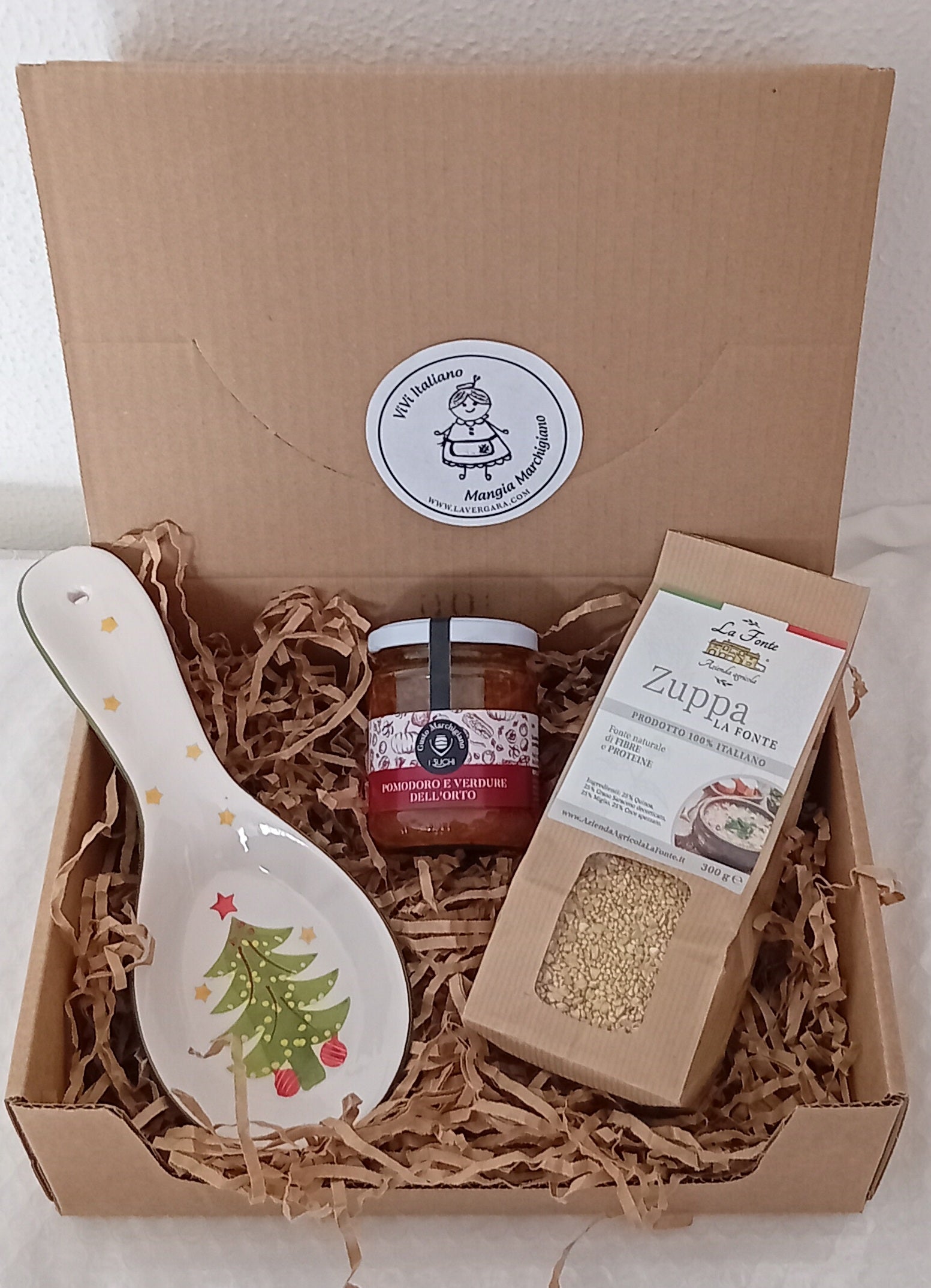 Contains: LaFonte soup, tomato sauce and garden vegetables with ladle holder